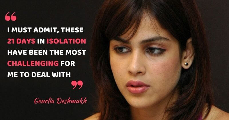A talented actress Genelia Deshmukh took to social media to inform that she was tested coronavirus positive three weeks ago. After three weeks of isolation, she shared the news with her fans that she recovered from COVID-19. Genelia Deshmukh talked about the challenges she faced during her 21 days long isolation period. She was tested positive and was asymptomatic for the last 21 days. Genelia Deshmukh wrote,