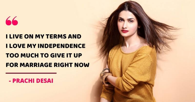 Prachi Desai added that she has been married on-screen many times and lives life on her terms. She said,
