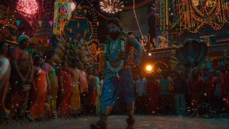 The teaser opens with a lively jatara scene, with devotees intensely praying to Goddess Kali. In the midst of the enthusiasm, the camera centers around charming shots — a mysterious figure decorated with traditional attire, applying kohl, wearing jhumkas, and donning the unmistakable bottu on the forehead. Notwithstanding, the film unfurls as the hero is uncovered: Allu Arjun, also known as Pushpa Raj, releases his wild jatara persona in the midst of a chaotic scenery of baddie-bashing.