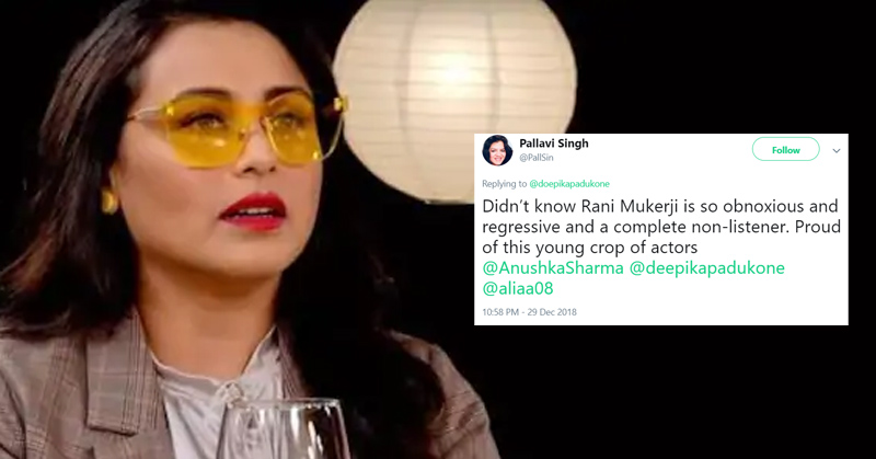 A series of tweets were broke out. The tweets were supporting the statement of Dipika Padukone while eventually trolling Rani Mukerji. Some called her obnoxious and regressive as she refused to listen to other’s opinion.